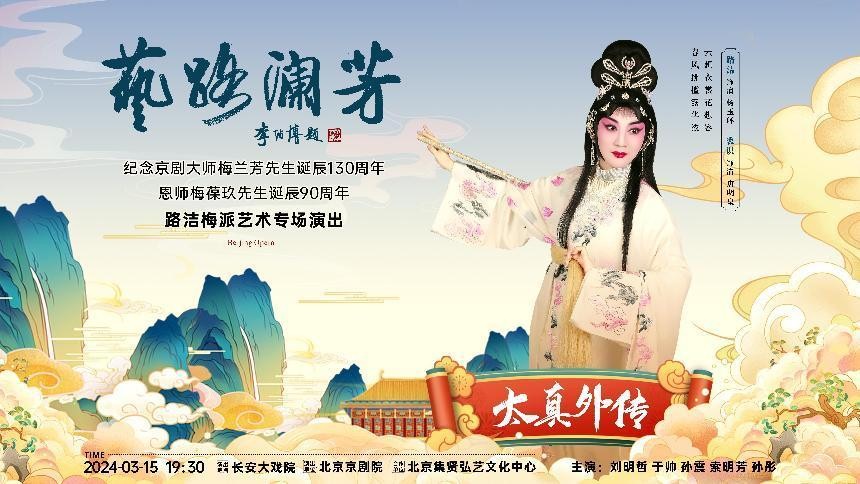 今年是京剧大师梅兰芳先生诞辰130周年和梅葆玖先生诞辰90周年。3月15至17日,北京京剧院青年“梅派”青衣演员路洁将在长安大戏院举办个人京剧专场演出,为观众带来《太真外传》《穆桂英挂帅》《霸王别姬》《洛神》等极具特色的“梅派”剧目,向“梅派”艺术的创始人梅兰芳和路洁的恩师梅葆玖两位京剧先贤致敬。