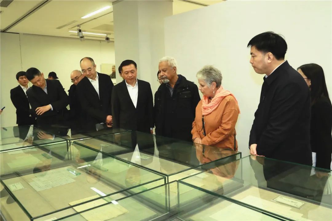古尔纳一行参观现代文学馆内陈设的名家手稿展