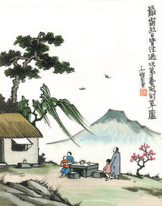 马上就要离开桂林师范学校了,丰子恺给同事们画了不少漫画,留作纪念,这些画的画题都是元人吕思诚《戏题》中的“严霜烈日皆经过,次第春风到草庐”。他说:“同事中多颠沛流离而来者,得此画可资振作。”
