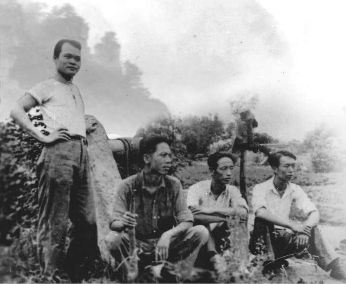1940年5月,臧克家(右二)与碧野(左一)、姚雪垠(左二)、田涛(右一)在鄂西北前线。