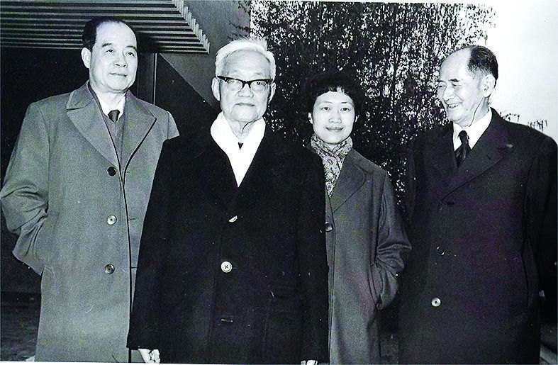 1979年,巴金率电竞竞猜代表团访法,在法国合影(从左往右:罗荪、巴老、小林、徐迟)