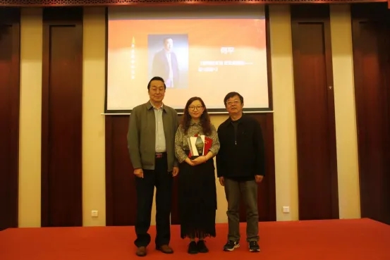 白烨、张新颖共同为何平(汪雨萌代为领奖)颁奖