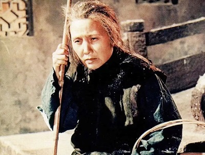 1956年,在鲁迅先生逝世20周年之际,夏衍编剧、桑弧导演的新中国第一部彩色故事片《祝福》上映,图为电影《祝福》中的祥林嫂,由白杨饰演