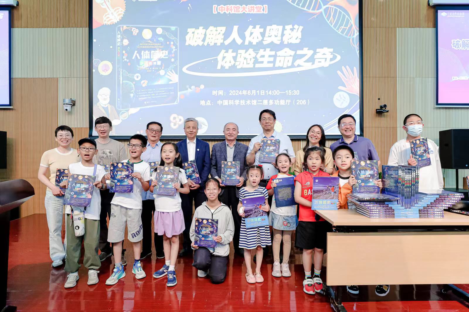 6月1日,由接力出版社和中国科学技术馆联合举办的“破解人体奥秘,体验生命之奇——比尔·布莱森《人体简史(少儿彩绘版)》新书发布会”在中国科学技术馆举办。著名古生物学家、《人体简史(少儿彩绘版)》译者苗德岁,解放军总医院第三医学中心急诊科原主任王立祥,北京大学医学部医学人文学院教授张大庆,中国科普作家协会副理事长尹传红,中国科普作家协会食品科普创作专业委员会主任单守庆,中国古动物馆馆长王原,北京大学医学部药学院教授李治中,北京市海淀区中关村第三小学图书馆馆长胡阳,接力出版社总编辑白冰,接力出版社青年分社副社长申立超参加活动。