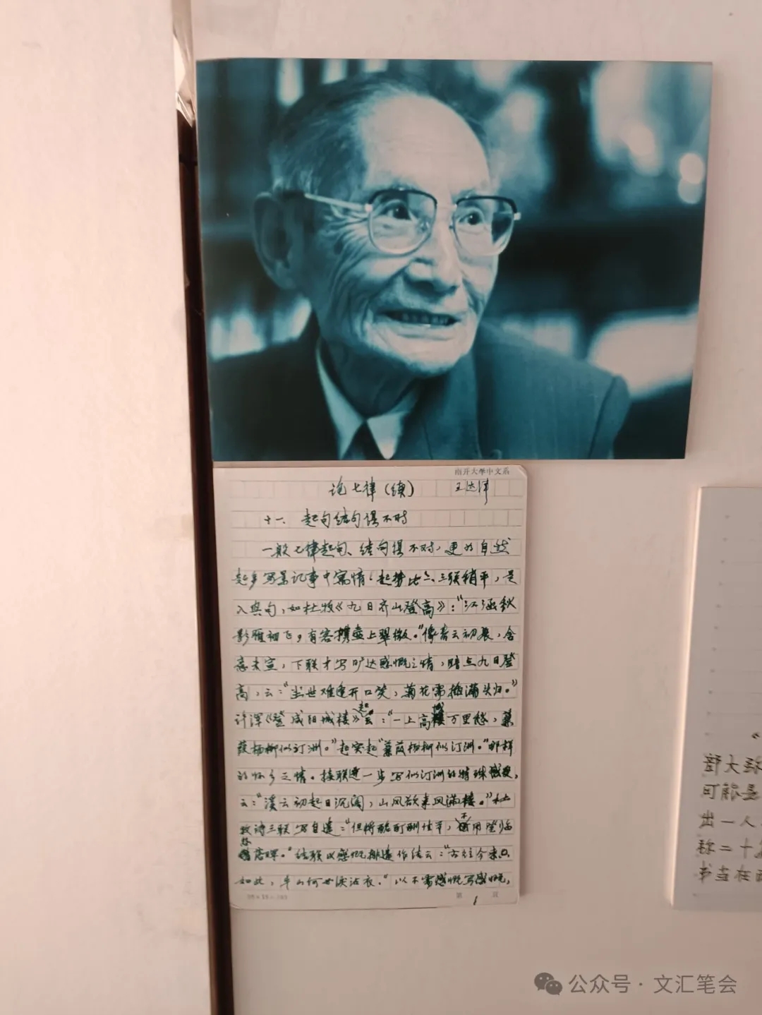 记忆深刻的是两件事,一是一九八六年秋季,我当时很想学习老先生的授课经验,听说王达老在讲“魏晋南北朝文学批评史”,便于下午两点按时来到主楼阶梯教室。里面已坐了一百多人,但都是三四十岁貌似公务员的人,一看就不是南开大学的学生。我便在前排落座,为的是仔细观摩王达老的风采。很快,王达老按时入场,听众鼓掌。彼时老先生已七十高龄,衣着简朴,精神矍铄,坐于讲台后,从裤兜里掏出薄薄一册线装书,似是《昭明文选》中的一册,内有范晔的《狱中与诸甥侄书》,边看边讲。老先生的讲法似是自我陶醉于范晔之文,念一句说一句,全然是欣赏赞颂的声口。约半小时许,下面一位听者举手站起来说:“这个您上次讲过了。”老先生答曰:“哦?是这样?”听众都笑了。他便往下翻了几页,继续讲读。读到“吾书虽小小有意”一句,放下书,对众人说道:“吾书亦小小有意。你们谁想要我写的,可以告诉我,我给你写一幅。”大家都热烈鼓掌。讲到一处,老先生起身转向黑板,脚下一滑,险些仰面跌倒,下面不禁一阵惊悚。幸而无事,他在黑板上写了一个“褻”字,果然十分好看。