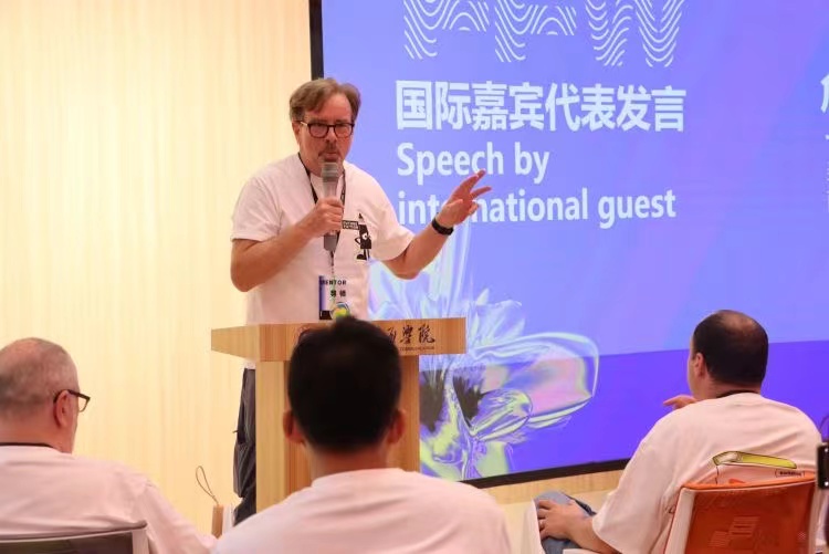 6月11日,未来小说工坊·国际大师班开幕式在重庆移通学院瀛洲校区古剑书院含光报告厅成功举办。重庆移通学院校长王永周,南方科技大学教授吴岩,国际嘉宾代表、美国科幻作家詹姆斯·帕特里克·凯利等与会,来自全球各地的科幻作家、学者及业界精英汇聚于此,共同见证了这一科幻创意写作工坊的盛大启幕。