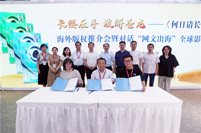 6月19日,第30届北京国际图书博览会(BIBF)开幕当日,安徽文艺出版社的《何日请长缨》海外版权推介会暨对话“网文出海”全球影响力活动在安徽馆举办。