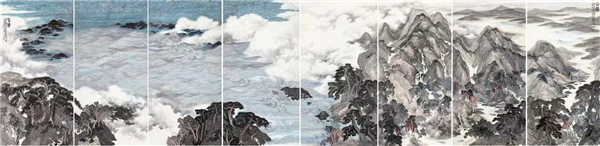 《听涛山岳图》 温骧 作 纸本设色 248×1032cm 2015年