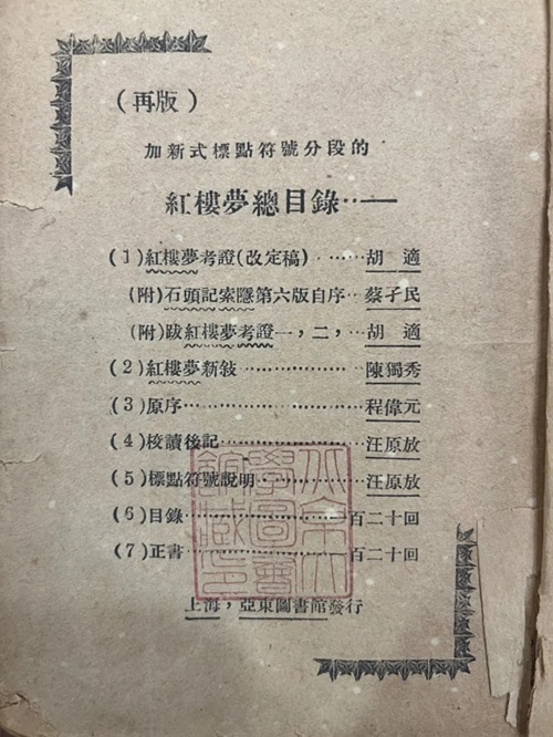 上海亚东图书馆新式标点版《红楼梦》(1922年再版)