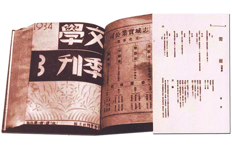 1934年7月,由文学家巴金推荐,《雷雨》在《文学季刊》第一卷第三期上发表