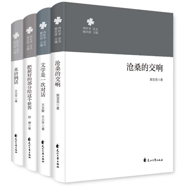 “四叶草”论丛是一套“轻理论”学术丛书,包括《沧桑的交响》(郭宝亮著)、《文学是一次对话》(王文静、王力平著)、《把最好的部分给这个世界》(桫椤著)、《水浒例话》(王力平著)四册。四部书既有对作家、作品的直观点评,也有对文学话题和理论的深入分析,并通过对话这种相对活泼的形式让文学评论变得好读、易解,从而起到为读者传播、普及理论知识,提升文学见解与专业素养的作用。