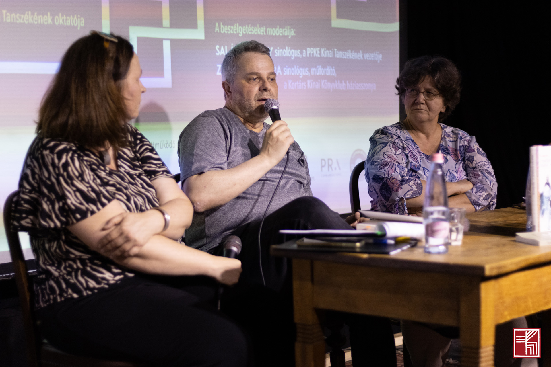 活动分为上下两场,以“圆桌讨论”形式举行。上半场讨论由俱乐部负责人、知名汉学家、翻译家宗博莉·克拉拉女士(ZOMBORY Klára)主持,受邀嘉宾为罗兰大学远东学院图书馆馆长、汉学家马约尔·柯尔奈莉奥女士(MAJOR Kornélia)和卡洛利·伽斯帕尔大学中文系讲师、汉学家、翻译家托考伊·若尔德(TOKAJI Zsolt)。下半场讨论由帕兹马尼·彼得大学中文系主任、汉学家邵莱特·盖尔盖伊(SAL?T Gergely)主持,受邀嘉宾有文学翻译本柯·费伦茨(BENK? Ferenc)、中国和东亚问题学者、布达佩斯考文努斯大学博士生帕夫里切克·帕特利克(PAVLICSEK Patrik)和罗兰大学中文专业学生佩莱·托马什(PELLE Tamás)。