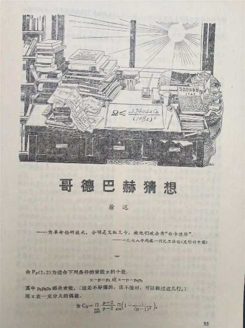 1978年1月,《人民文学》杂志在新年第一期头条发表了老作家徐迟的新作:报告文学《哥德巴赫猜想》。该文讲述了数学家陈景润不平凡的人生经历(他的童年、求学生涯,以及被华罗庚赏识,进入中国科学院数学研究所的过程。),“哥德巴赫猜想”的内容和发展历史,以及陈景润是如何在“文化大革命”期间,在艰苦环境下通过顽强努力取得了(1+2)的证明过程(文革中,陈景润受到各种诽谤、遭遇了许多困难和他的生活十分艰辛,以致身患重病,后来在毛主席的指示下住院治疗。)。