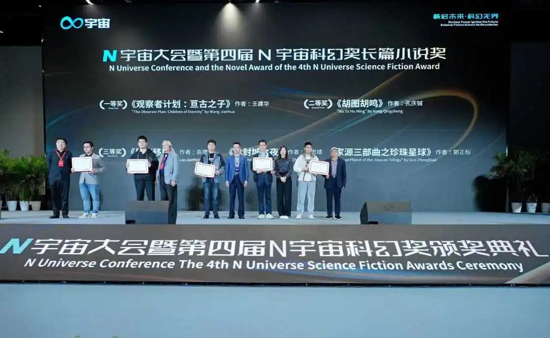 10月19日,首届N宇宙大会暨第四届N宇宙科幻奖颁奖典礼在成都科幻馆太阳厅举行。活动由中国科普作协、中国核学会指导,中核(北京)传媒文化有限公司主办,中国核动力研究设计院、核工业西南物理研究所协办,是“天问”华语科幻文学大赛系列活动之一。北京元宇科幻未来技术研究院名誉院长、科幻作家王晋康,北京元宇科幻未来技术研究院院长、科幻作家刘慈欣视频寄语。中核集团董事会秘书、新闻发言人潘建明出席大会并致辞。2023成都世界科幻大会联合主席、“天问”大赛评委会副主席本·亚诺,四川省人大监察和司法委员会副主任、省作协原党组书记侯志明,中国科普作家协会副秘书长李红林,北京理工大学出版社总编辑樊红亮,华语星云奖创始人董仁威,以及科幻作家何夕、凌晨、杨平、陆杨、海漄等,和现场的400余名科幻迷及线上数万名网友共同见证这一重要时刻。