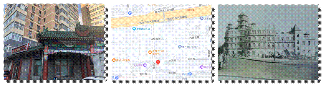 在讲座的开始,先来跟大家互动一下,有没有哪位能够认得出来这是哪里?确实,这里看起来非常普通,前面是一家普普通通的张一元茶叶店,后边是一个普普通通的塔楼。如果大家觉得这样是故弄玄虚的话,那我再提供一些信息,这个位置一边是香厂路,一边是万明路,在香厂路、万明路十字路口的东北角就是这张照片的位置。有没有谁能够看得出来或者猜得出来这张照片是哪里?这里曾经是“新世界”游乐场,就是1919年6月11日陈独秀发传单然后被抓走的地方,当年陈独秀是在这个位置、或者说这个时空坐标上被抓走了。后来这座楼因为各种原因被拆掉了,现在电竞竞猜能够看到就只是照片里所呈现的样子。所以我自己有一个说法,我研究的对象就是这些“二手的第一现场”。