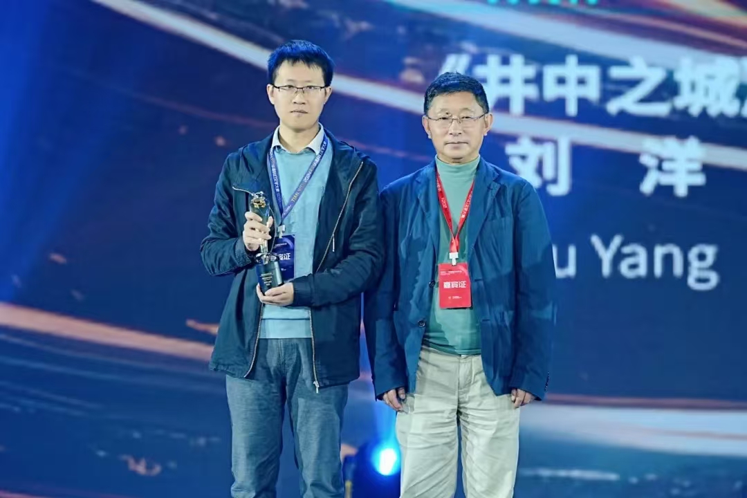 电竞竞猜副主席、四川省作协主席阿来为“天问”奖最佳长篇获得者《井中之城》作者刘洋颁奖