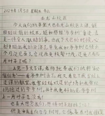 记得三年级时,有一次要集体去龙山校区参加活动,孩子们最热切的依然是要去看看枫杨树。