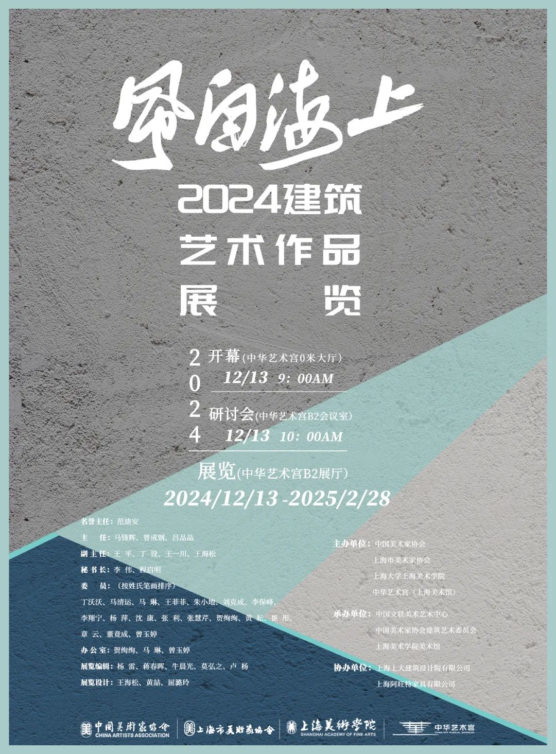 12月13日,由中国美术家协会、上海市美术家协会、上海大学上海美术学院及中华艺术宫(上海美术馆)联合主办的“风自海上——2024建筑艺术作品展览”在中华艺术宫开幕。展览旨在展示近年来优秀建筑艺术创作成果,彰显建筑艺术的民族文化内涵和时代美学意蕴,发挥其在城乡发展与美丽中国建设中的作用,提升民众审美水平,筑就各美其美、美美与共的城乡新风景。