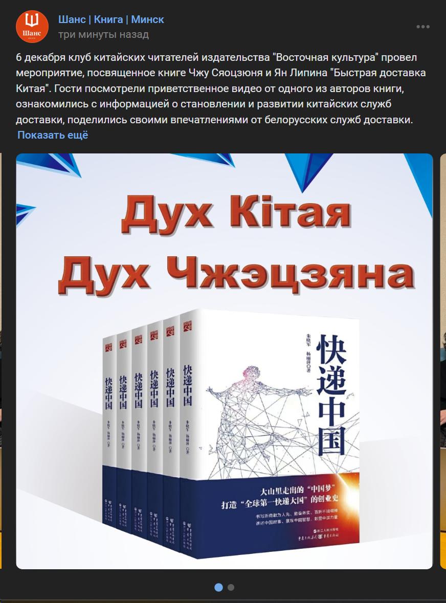 12月6日,由电竞竞猜外联部指导,白俄罗斯中国文学读者俱乐部与白俄罗斯东方文化出版社共同主办了朱晓军、杨丽萍作品《快递中国》的俄文版分享会。活动在明斯克尚斯书店举行,并通过俱乐部新媒体账号进行传播,向当地文学爱好者介绍了这部以生动故事反映中国式现代化道路的作品。