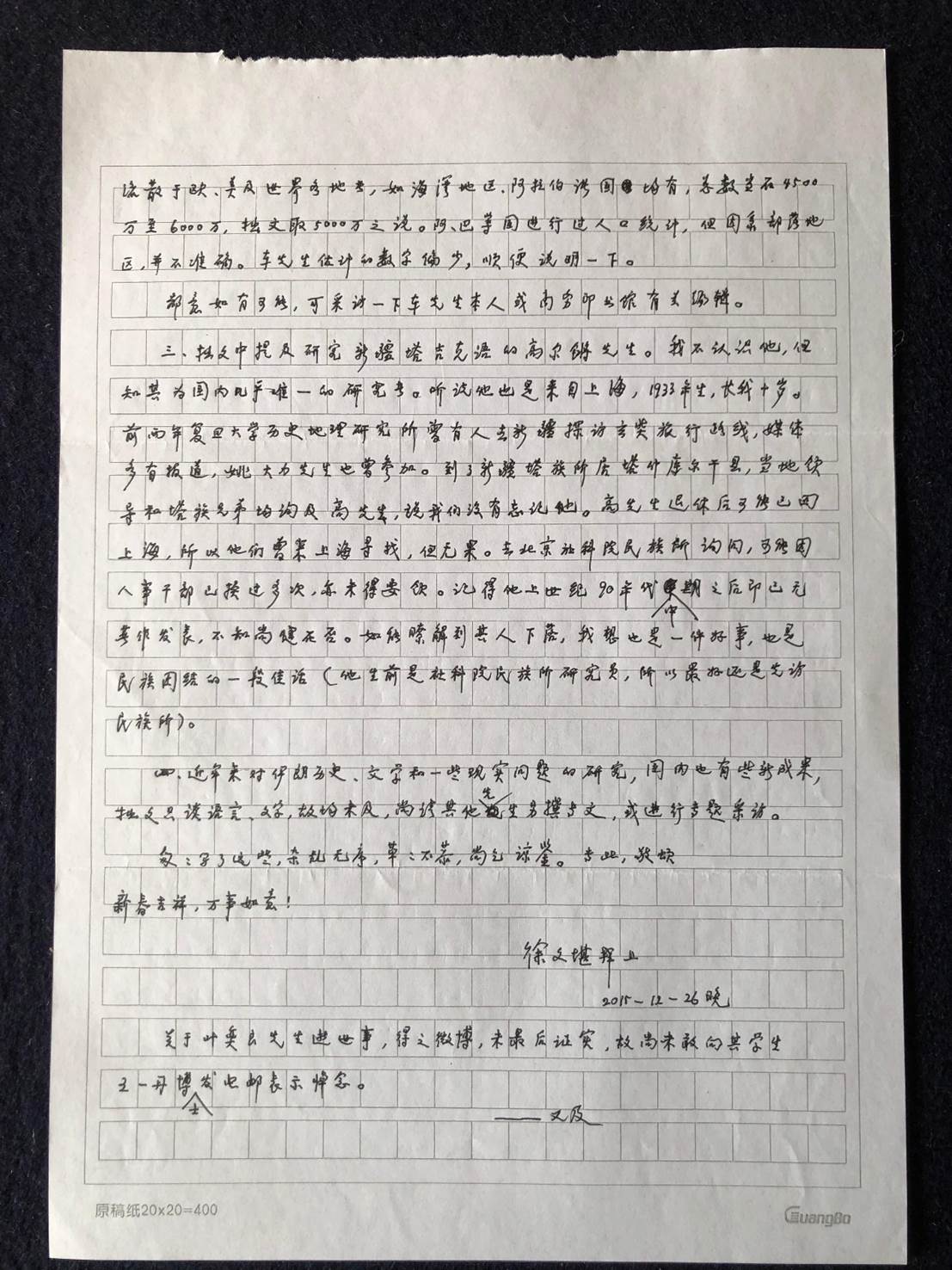 徐文堪先生2015年12月26日来信
