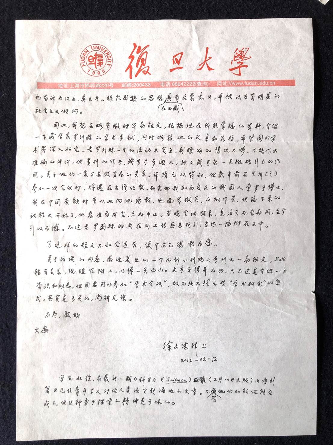 徐文堪先生2012年2月12日来信