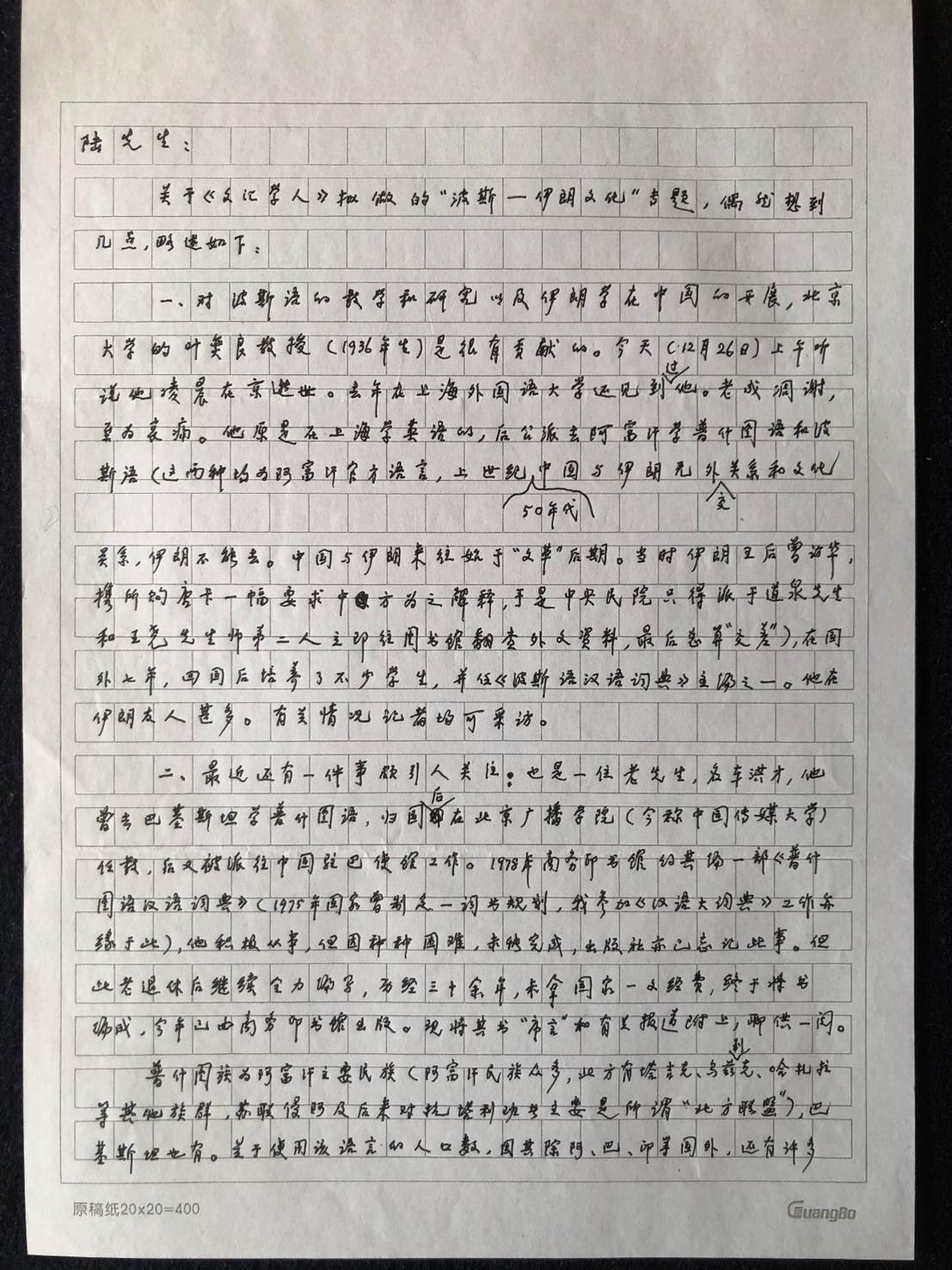 《文汇报》的《文汇学人》改版,我一度参与编辑,徐先生也同样给予关注和支持。2015年2月12日来信: