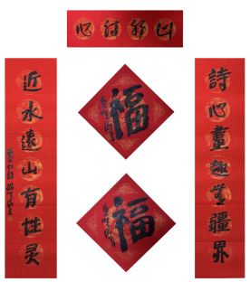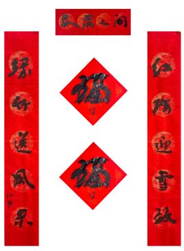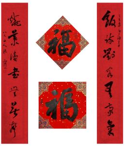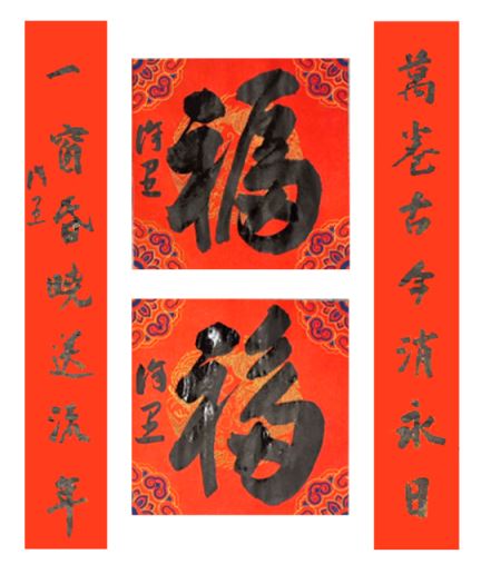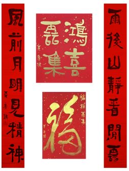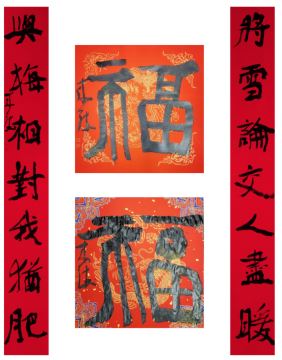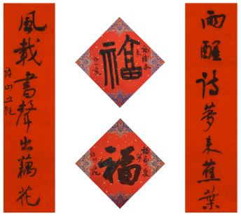 中国美术家协会名誉主席、中央文史研究馆副馆长冯远书对联:“祥龙腾云辞旧岁,灵蛇纳福迎新春。”