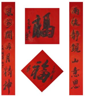中国美术家协会副主席、河北省美协主席祁海峰书对联: