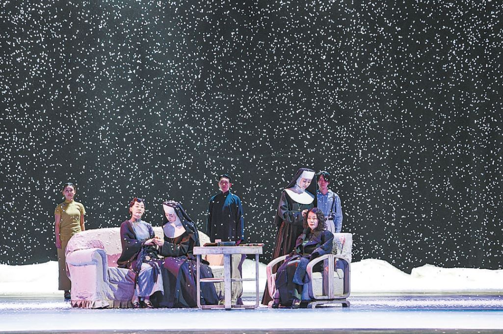 虽然李六乙的加减法未必都能为观众顺畅接受,尤其最后一场重头戏,在如此密集的突转和致命的紧张感中,调性的突然变化极易解构掉剧作的悲剧性。但他毕竟打开了解读《雷雨》的新视角。尾声部分,轰鸣的马勒第二交响曲中,漫天大雪埋葬了灾难和罪孽,面对那些既有罪又无辜的人,建立“天边外”一个洁净新世界的憧憬,当是李六乙与曹禺最贴心的对话。