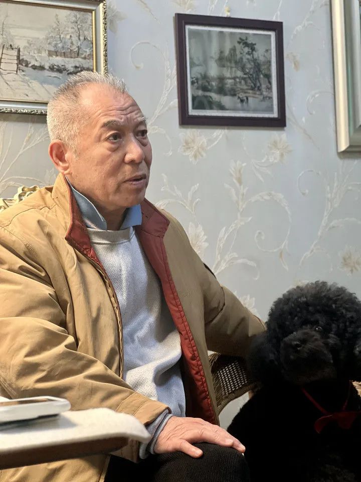 梁晓声在家中接受记者专访,小狗“皮皮”在一旁安静聆听。