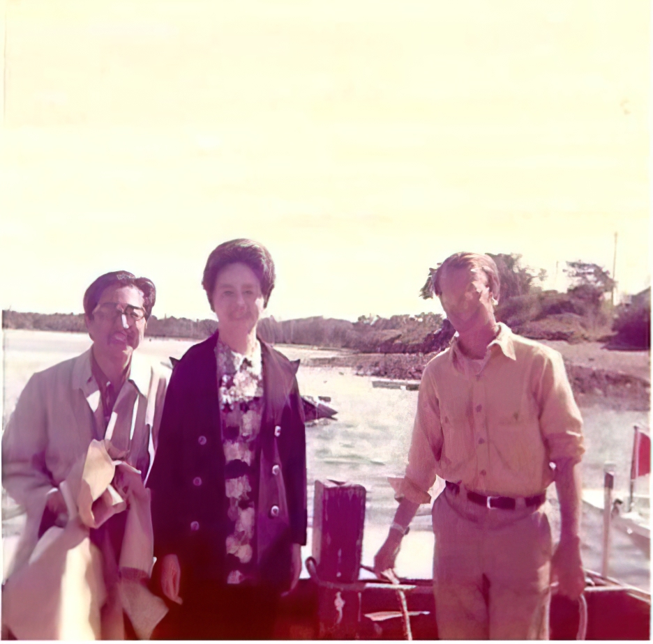 赵钟荪、叶嘉莹和艾朗诺在缅因州船上,1973年。