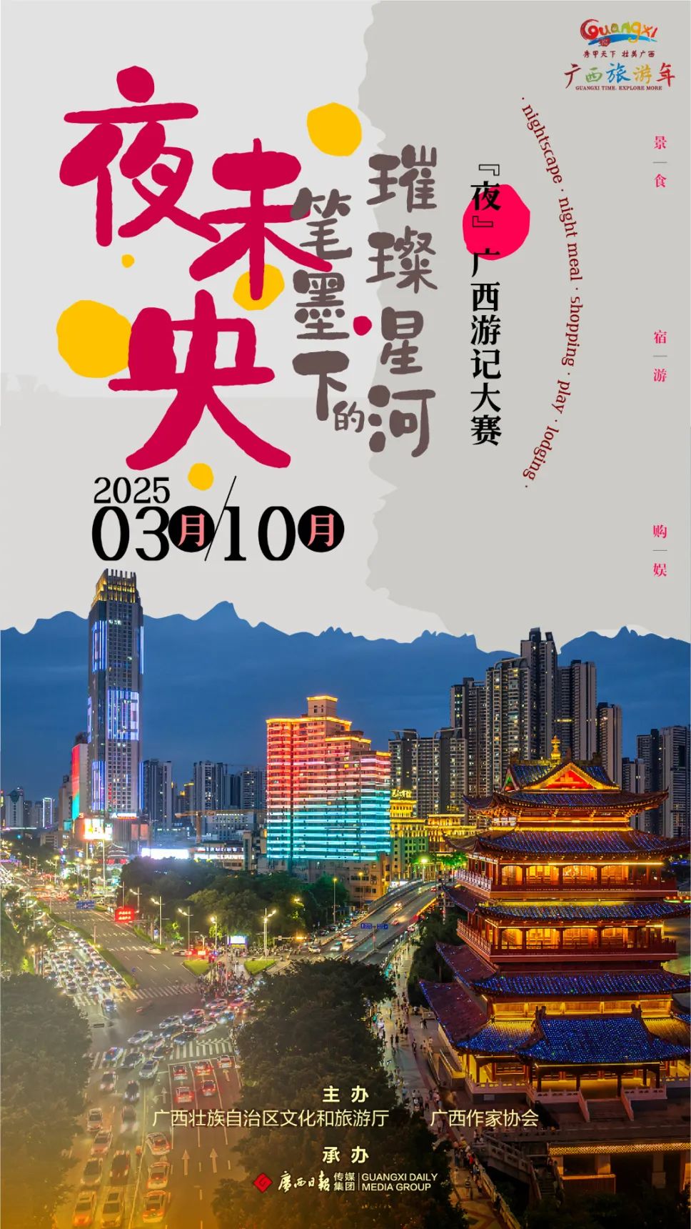 以“夜广西”为主题,围绕广西的夜间旅游展开,讲述经历体验、所见所闻、所感所悟等,阐发广西文旅夜经济观察,展现广西夜文化内涵。