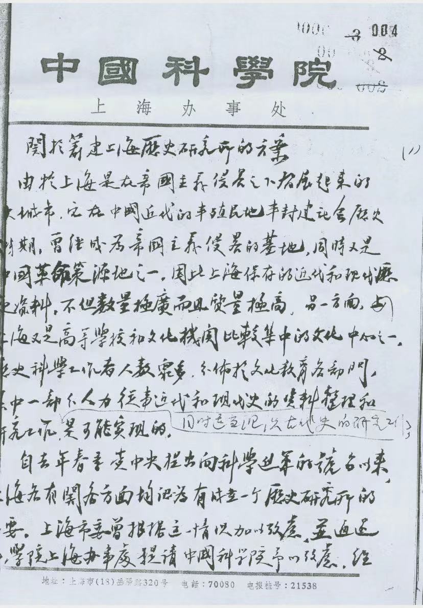 筹建历史研究所的文件(来源:上海社会科学院历史研究所)