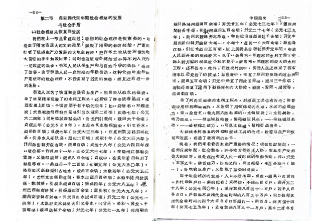 历史系资料室藏自编《中国通史》教材内页(来源:复旦大学历史学系资料室)