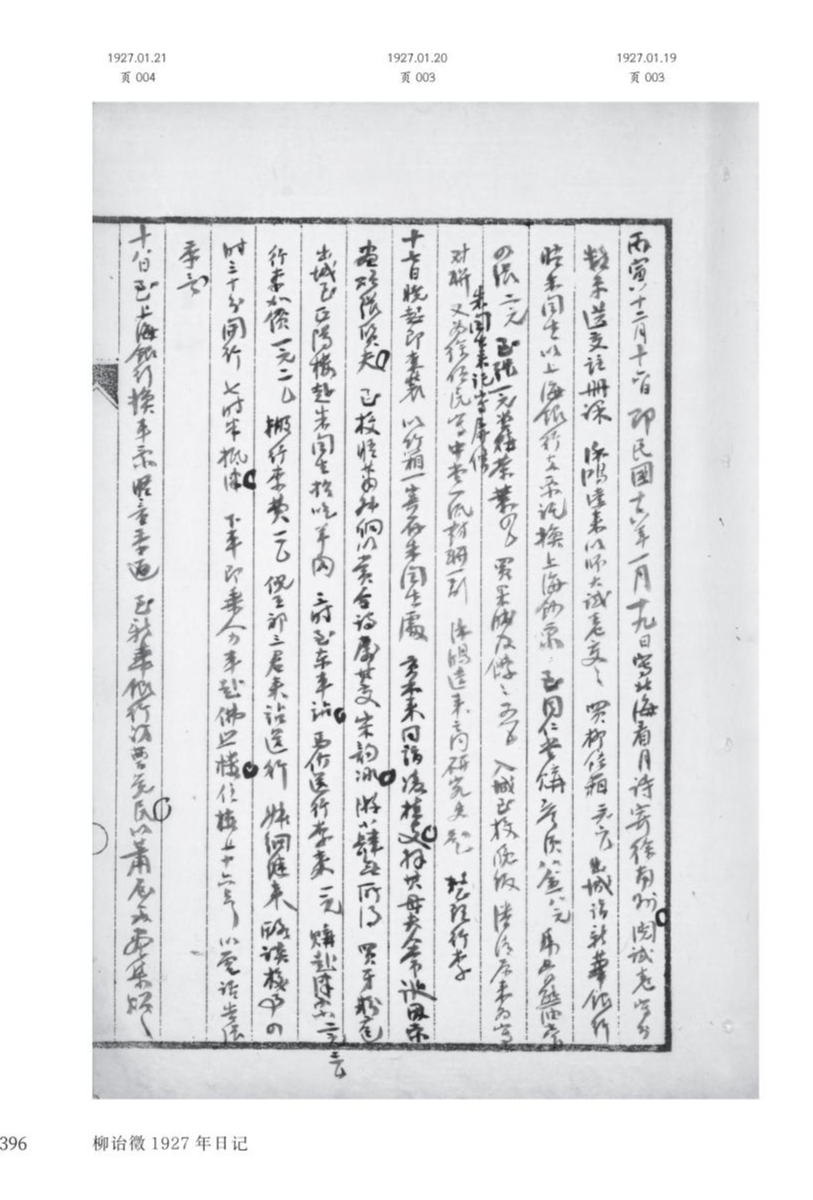 《日记》在详载先生勤勉不懈、真诚坦率和温馨亲情方方面面的同时,也真实再现了先生亲历的风云变幻,内容殷实,颇值查究。1925年3月,东南大学爆发“易长风潮”,先生牵涉其中,愤而北上,辗转东北大学、北京女子大学和北京高等师范学校等处。1927年1月19日,也就是本册日记的开篇,先生完成当日手头工作,便即行整拾行装,于次日下午4时半,从正阳门搭乘火车经天津南归,颠沛流离的北漂生活至此画上句号。23日上午火车抵宁,短暂停留便再次搭乘火车返回故里镇江。