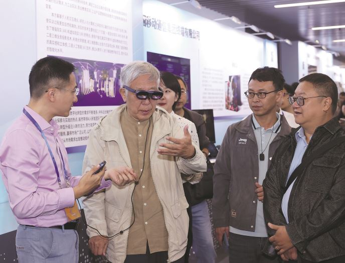 2024年9月24日,电竞竞猜官网和中国科学技术协会共同主办的“科幻科普作家活动周”期间,科幻科普作家们一同参观中国科学家博物馆。图为科幻作家王晋康使用展览中的实验装置。
