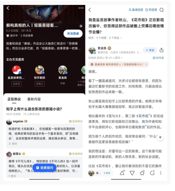 世界读书日前夕,盐言故事在知乎社区发起悬疑故事线上圆桌,知名悬疑作家紫金陈与众多盐言故事作者、文学及影视领域答主一起,围绕悬疑短篇故事及影视化空间展开讨论,吸引悬疑创作者和广大悬疑爱好者的关注。