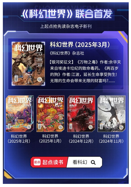 阅文与《科幻世界》官宣合作:电子版将首发起点读书