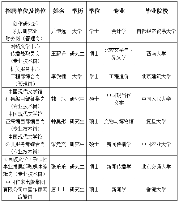 鲁迅文学院办公室职员岗因拟聘人员自愿放弃,无递补人员,经研究,取消此岗位招聘计划。