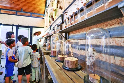 5月17日,游客参观海南定安富文镇九所村的种子博物馆。