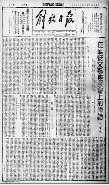 《在延安文艺座谈会上的讲话》首发于1943年10月19日《解放日报》