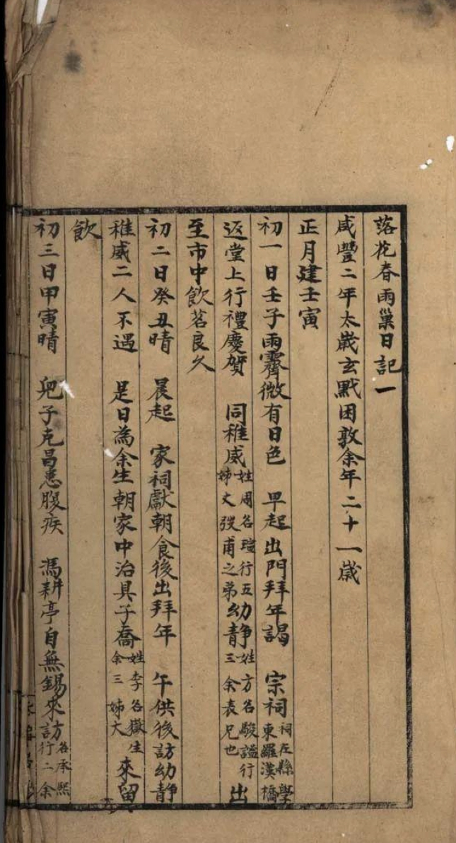 落花春雨巢日记五册 清武进赵烈文(惠甫)撰 手稿本 惠甫早年时日记草稿本。每半页十行,直行格次纸。自咸丰二年至五年。