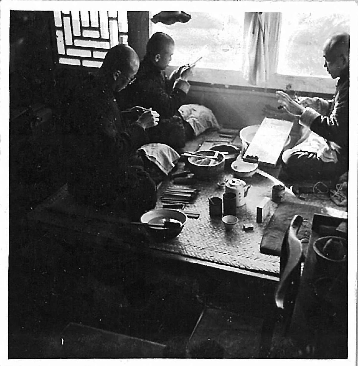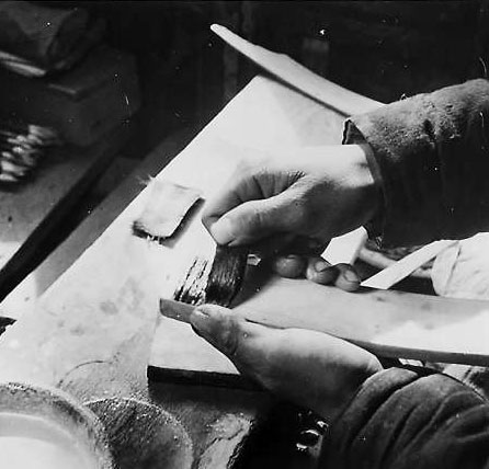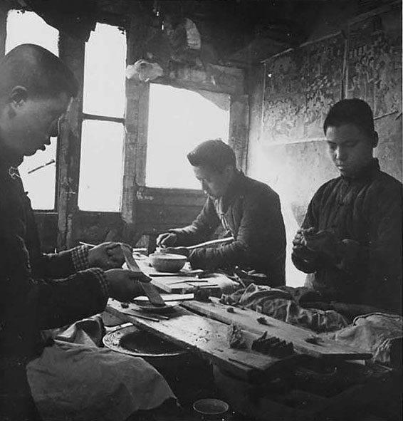 和平门外胡文昇笔庄的师傅们在制作毛笔。