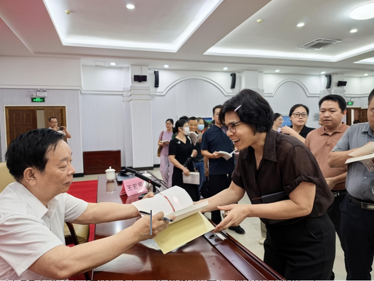 聂震宁、黄咏梅在“壮家歌海·名家共读”阅读分享会现场(潘剑 摄)