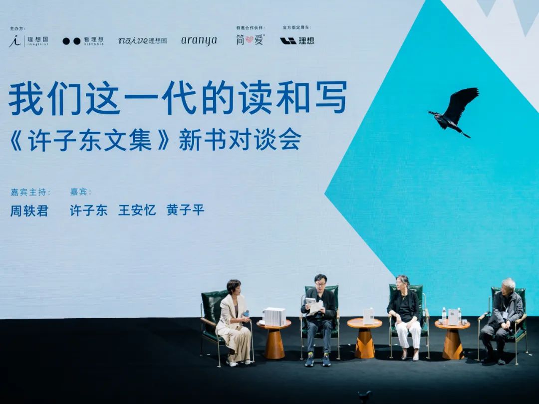 在《许子东文集》新书对谈会上,许子东(左二)与王安忆(右二)、黄子平(右一)出席,周轶君担任主持人。(图/理想国 提供)