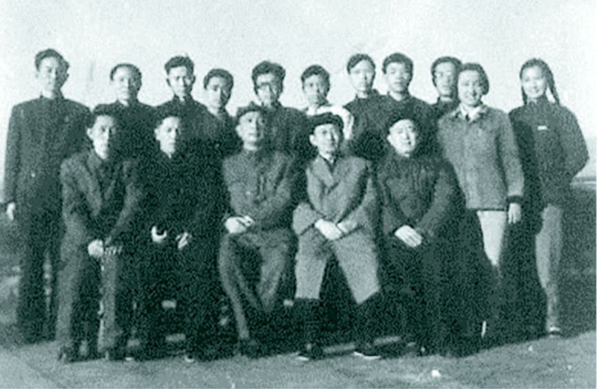 1962年1月,全国高校文科统编教材《中国现代文学史》(唐弢主编)编写组成员摄于中共中央党校。前排左起:刘泮溪、刘绶松、唐弢、王瑶、李文保。后排左起:万平近、严家炎、樊骏、吴子敏、许志英、黄曼君、张恩和、蔡清富、王德宽、陈子艾、吕启祥。