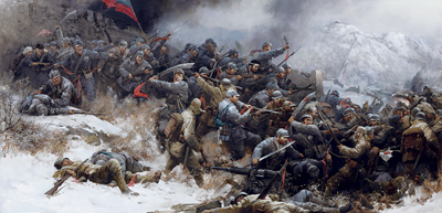 大刀向鬼子们的头上砍去(油画) 晏 阳作