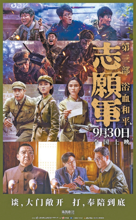 相较于前两部,《志愿军:浴血和平》在战争场面上进一步升级,以工业化水准多元全景式打造前线战场。除了重现上甘岭战役,影片还将呈现金城战役的坦克激战、铁道运输的反“绞杀战”等,刻画战地焦土之上,志愿军战士为和平浴血奋战的英勇身姿,描绘一幅全面、立体的战争图卷。影片演员阵容依旧豪华,包括张子枫、宋佳、朱亚文、陈飞宇、彭昱畅、肖央、王砚辉等。影片9月30日上映。