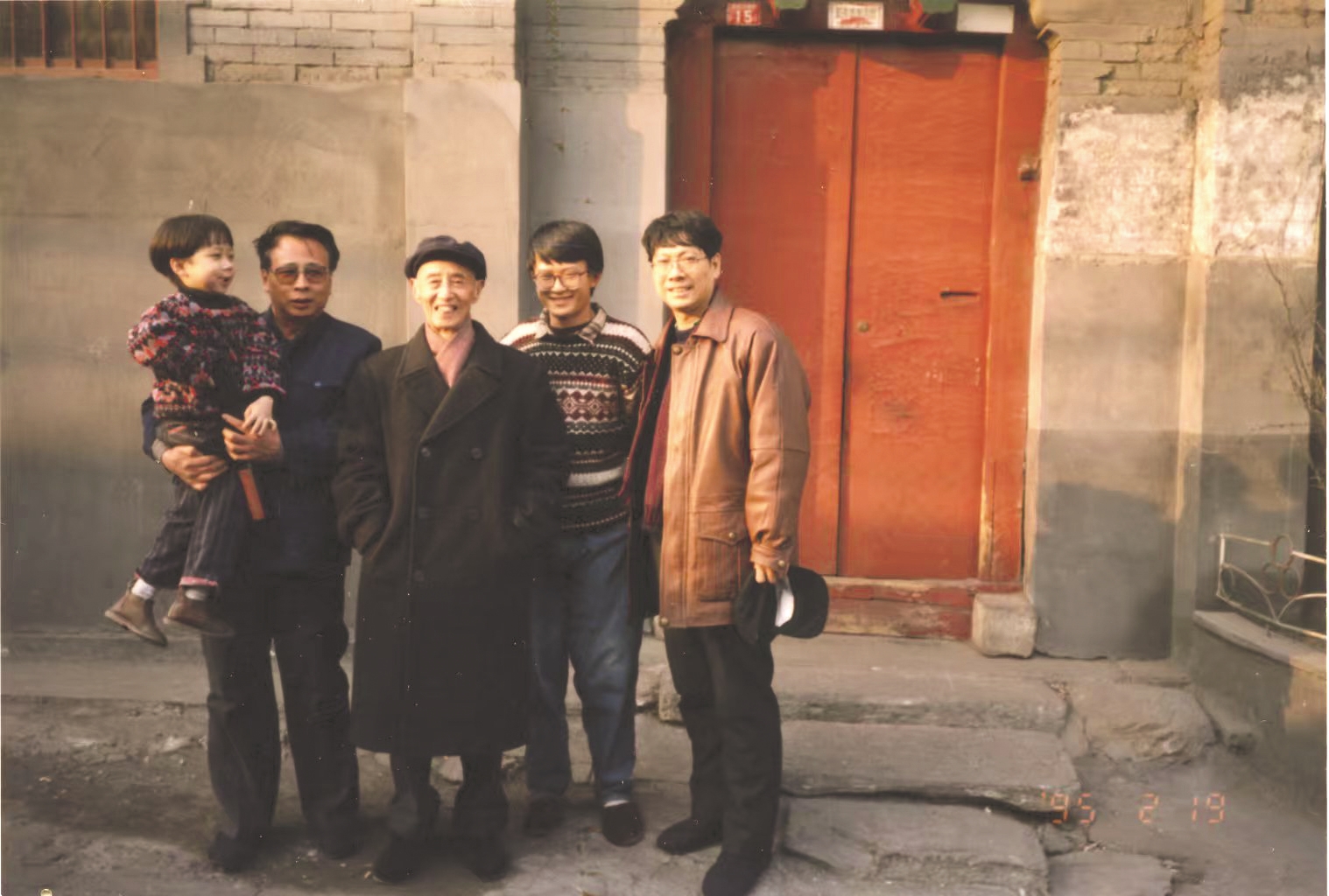 一九九五年二月十九日,臧克家与赵堂子胡同老街坊在家门口合影