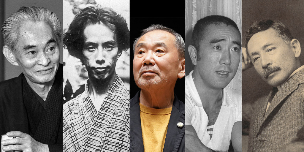 左起:川端康成、芥川龙之介、村上春树、三岛由纪夫、夏目漱石